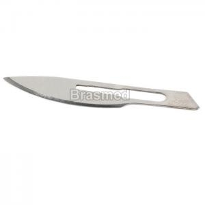 Lamina estéril para bisturi nº 24, confeccionada em aço carbono, esterilizada a raio gama, embalada individualmente em forma de sache c/inibidor de corrosão, que não permite a perfuração da embalagem, garantindo a esterilização e prevenindo contra possíveis acidentes, a embalagem permite a retirada da lâmina c/muita facilidade, permitindo a realizações de cortes suaves, de fácil identificação de sua área de corte através da diferença da tonalidade de cor, licenciada de acordo com a ISO 9002. Caixa com 100 peças.